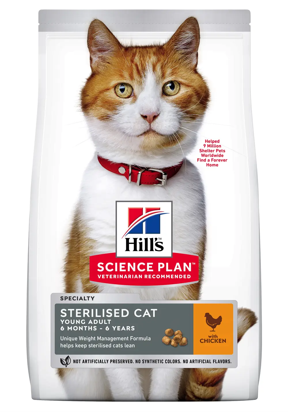 Hill’s Science Plan Young Adult Sterilised mit Huhn ist ein speziell entwickeltes Katzenfutter für sterilisierte Katzen.
