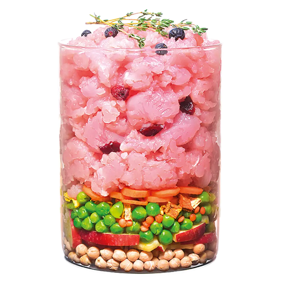 - 60% Frischfleisch – direkt aus frischem Fleisch verarbeitet.