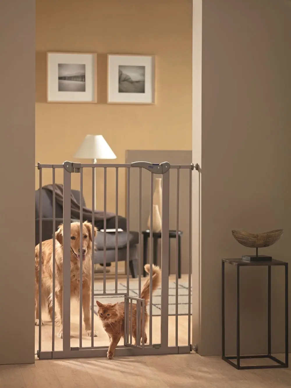 Hundetor mit 2-Wege-Öffnung mit doppeltem Verriegelungsmechanismus, verstellbar – mit einer kleinen Tür für die Katze.