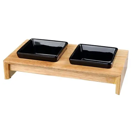 - 2 Keramikschalen mit Ständer schwerer Schalenständer aus stabilem Hartholz (Gummibaum),
