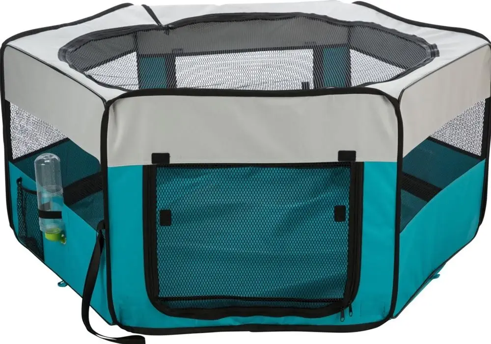 - abnehmbares Netz verhindert das Herausspringen des Tieres und schützt vor Katzen und Vögeln
